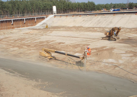 | Leistungen: | Abdichtung von Erdbecken mit Tonmehl im Trockenspritzverfahren mit unserem DryAir-Technologie |